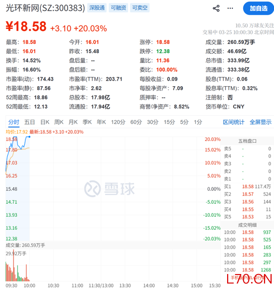 “词元(token)”概念持续发酵,光环新网走出20cm涨停。