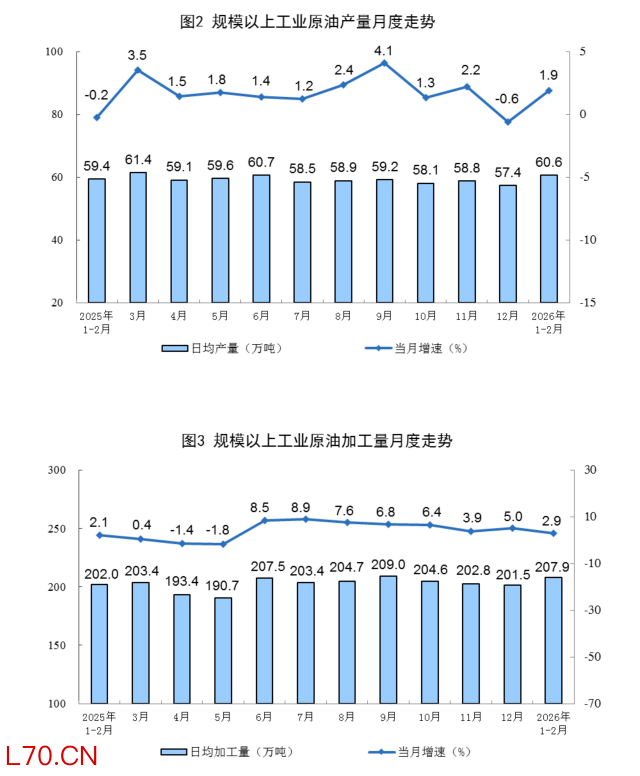 国家统计局:1—2月份,规上工业原油产量同比增长1.9%