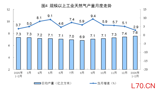 国家统计局:1—2月份,规上工业天然气产量同比增长2.9%