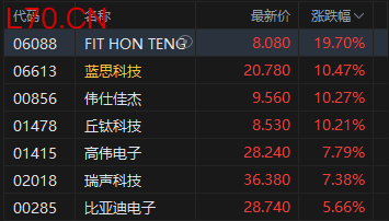苹果概念股强势, 伟仕佳杰涨超10%。此前有媒体报道,苹果可折叠iPhone据悉在工程测试阶段遭遇挫折,量产与出货或推迟数月。有知情人士透露,苹果折叠屏iPhone仍有望于9月发布,驳斥了此前媒体对该手机生产遭遇重大障碍的报道。知情人士称,苹果将于9月与iPhone 18 Pro和Pro Max一同发布这款可折叠机型。