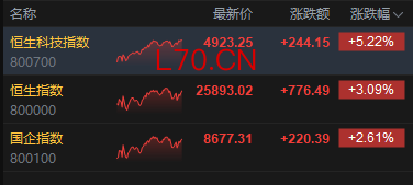4月8日消息,港股三大指数集体上涨。截至收盘,恒生指数涨3.09%,报25893.02点,恒生科技指数涨5.22%,国企指数涨2.61%。盘面上,科网股普遍上涨,美团涨超10%,阿里巴巴、小米涨超6%,哔哩哔哩涨超5%;半导体板块大涨,天数智芯涨超33%;苹果概念股强势, 伟仕佳杰涨超10%;黄金股走强,珠峰黄金涨超13%。