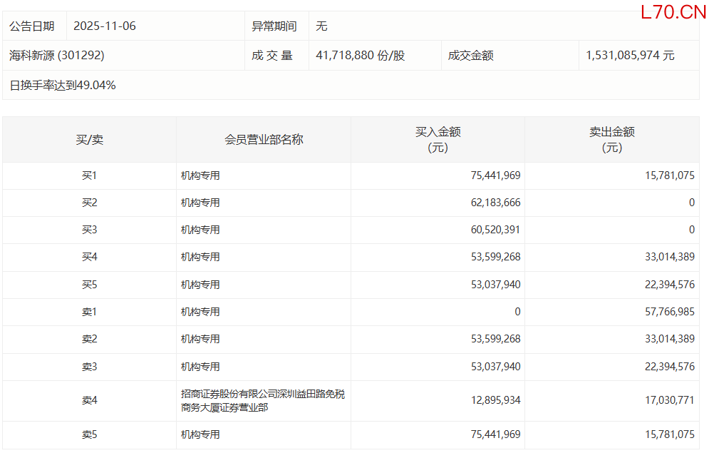 海科新源今日涨16.23%,5家机构专用席位净买入2.34亿元