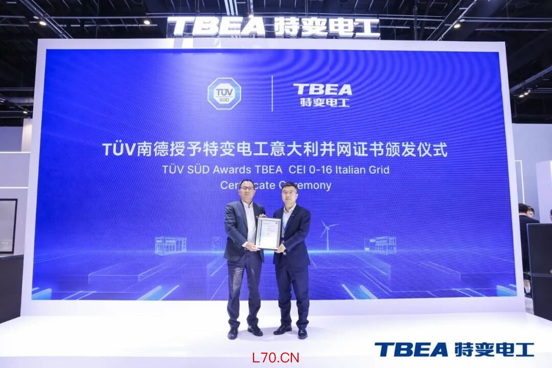CEI 0-16 认证由全球领先的认证与测试机构 TÜV 南德意志集团颁发,被誉为意大利中高压电网接入“技术护照”。该认证的通过,表明 TE215K-HV 储能变流器符合意大利中高压配电网准入标准要求,可适配各类中高压并网场景,具备规模化应用能力。