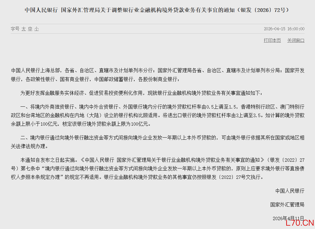 两部门:将境内外商独资银行、境内中外合资银行、外国银行境内分行的境外贷款杠杆率由0.5上调至1.5