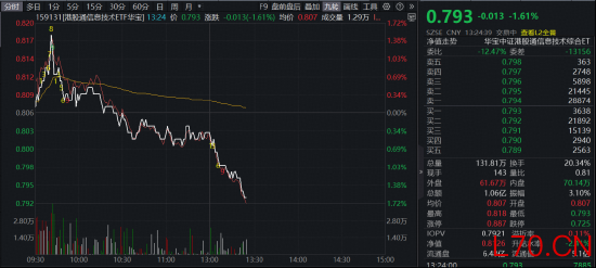 26日午后ETF市场服务门户,A股港股集体下挫,港股硬科技盘中急跌,全市场唯一*港股信息技术ETF(159131)早盘一度冲高近1%,随后震荡下行,午后加速向下,场内现跌1.61%。中芯国际、华虹半导体双双跌超6%。