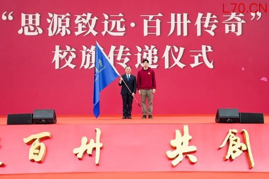 学校于2025年4月6日发起“思源致远·百卅传奇”全球交大人同传一面旗活动,这面凝聚着全球交大人深情厚谊的校旗,历时一年圆满完成全球130站传递,覆盖39个国家和地区,逾2万名师生校友共同参与。活动现场,安泰经济与管理学院2013级本科校友、2021年东京奥运会游泳冠军汪顺护送校旗入场,并将校旗呈交给杨振斌。校旗的传递象征着“选择交大,就选择了责任”的精神赓续,也传递着“走出交大,就要勇担使命”的价值追求。